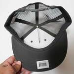 DECKY(ディッキー)の5パネルフラットバイザーメッシュキャップ。ツバ部分はロープが装着されています。