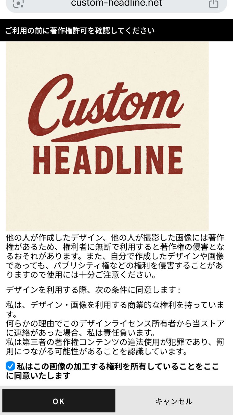 「私はこの画像の加工する権利を所有していることをここに同意いたします」