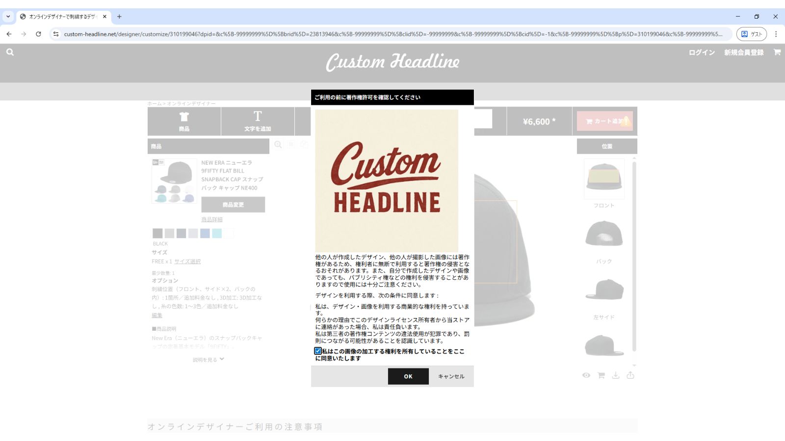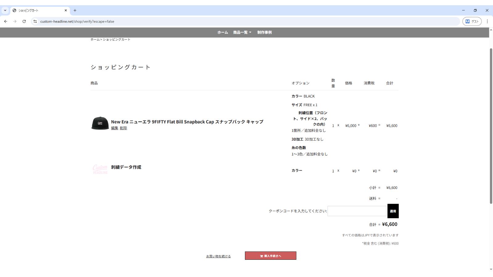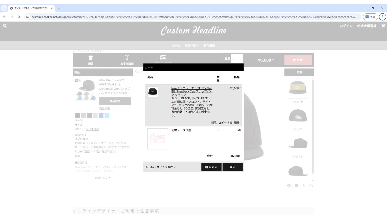デザインプレビュー、カート確認、