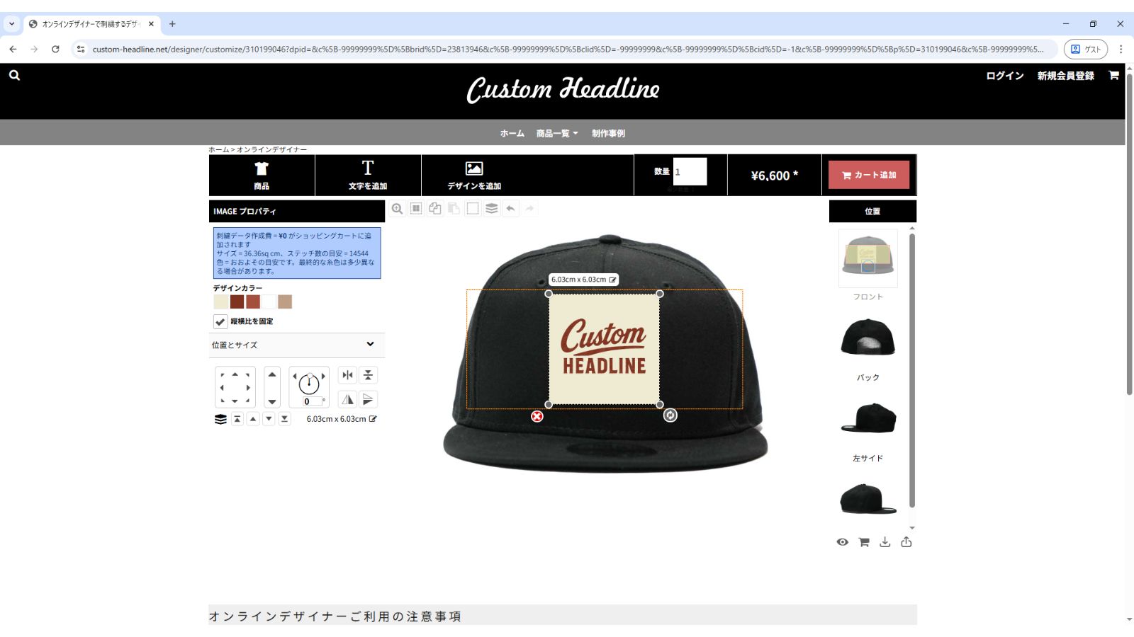 デザインが完成したら「カートへ追加」をクリックします。