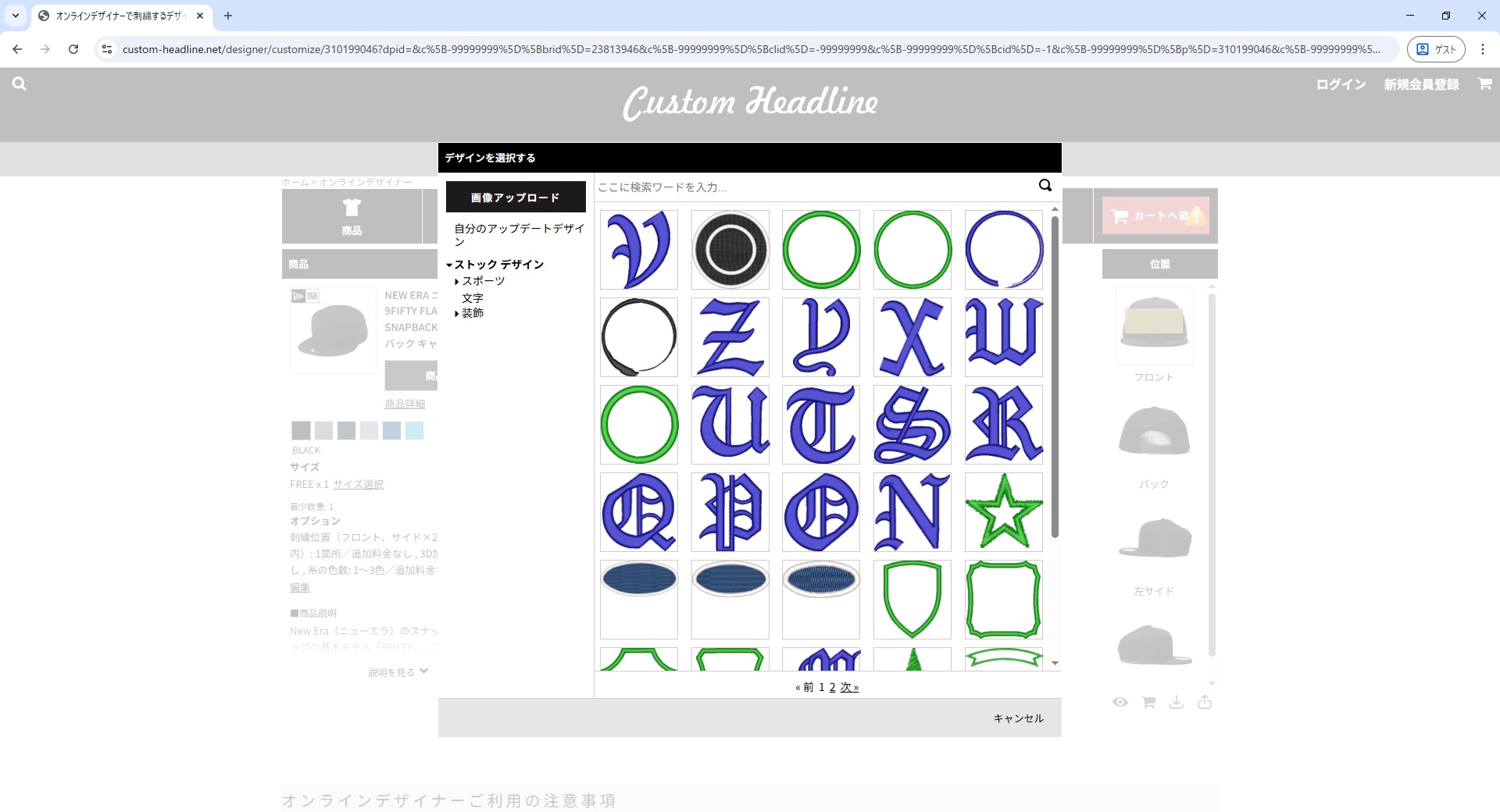 まずは、お好きなキャップを一覧から選択します。